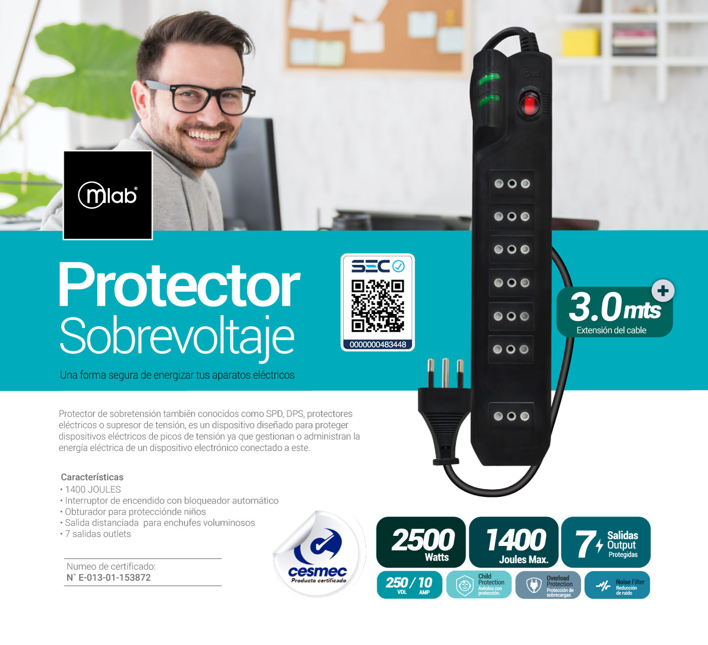 ALARGADOR PROTECTOR DE SOBREVOLTAJE 3 METROS