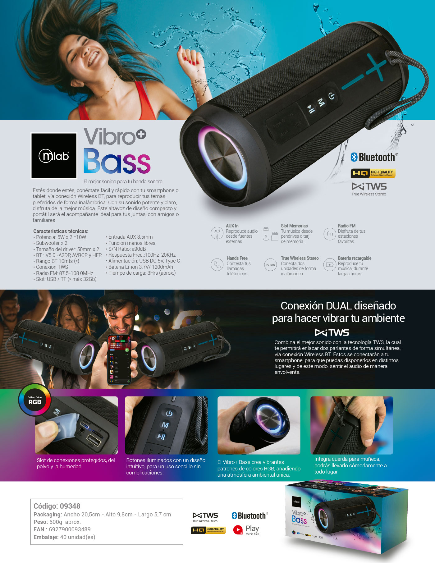Parlante TWS Vibro+ BASS
