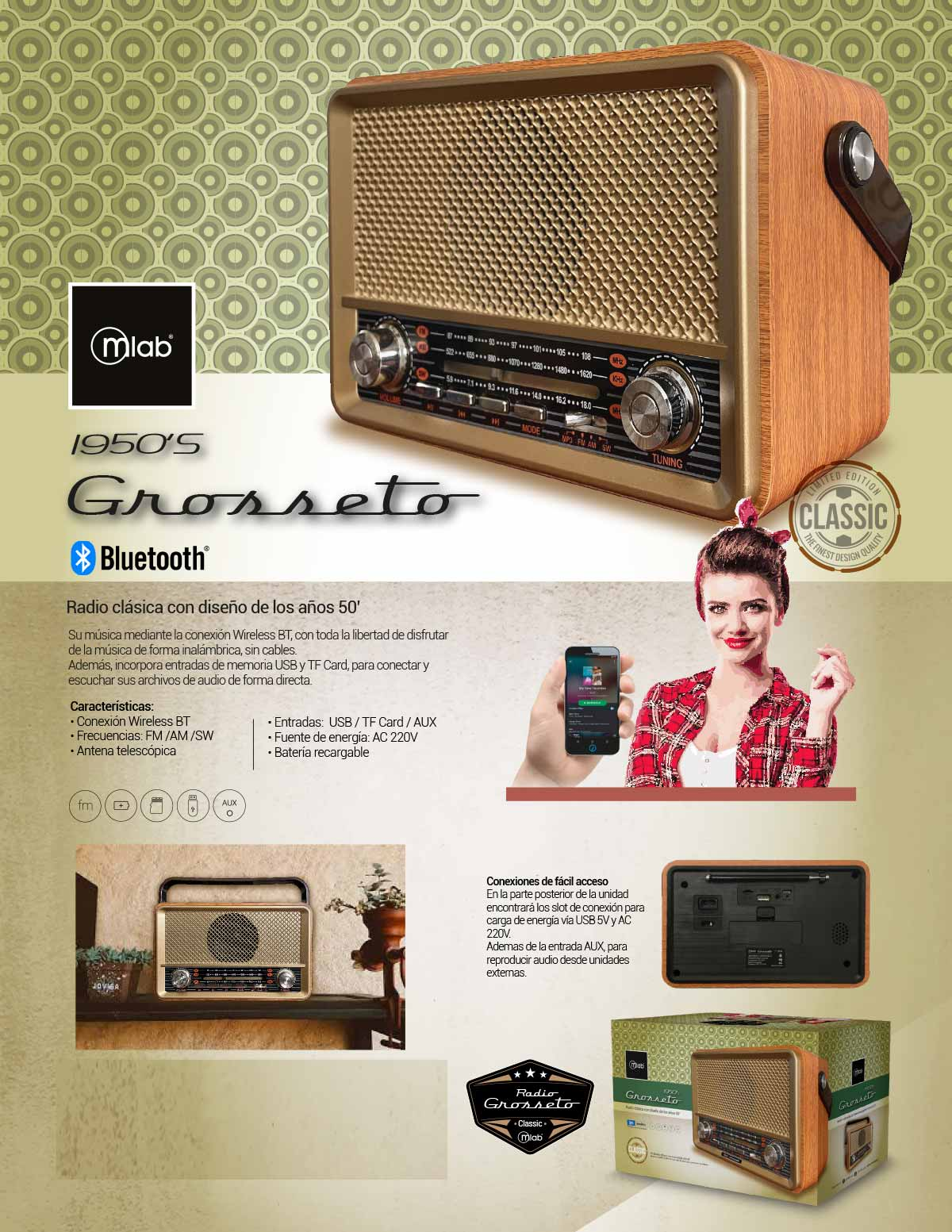RADIO RETRO GROSSETO 1950 BLUETOOTH MLAB